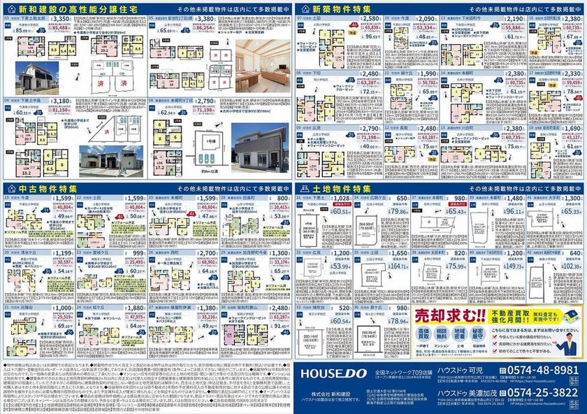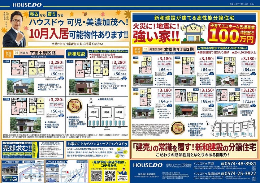 今月のチラシは「新和建設の高性能分譲住宅 可児市下恵土野区路、美濃加茂市本郷町4丁目 売出中!!」のご案内です!!